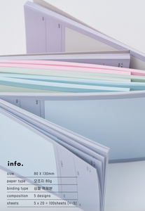 80 x 130mm5 designs, 20 sheets each100 sheets total