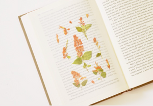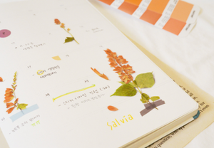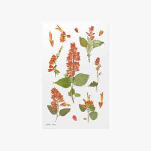 This is a pressed-flower type Salvia sticker made by pressing flowers and leaves. Salvia comes from the Latin word "salveo," which means storage or healing in relation to medically treatable properties. It is strong in high temperature and high humidity, so it can be seen a lot in summer. The red blooming flowers can be found in flower beds from summer to autumn, and the leaves are also used as spices and medicine.