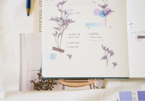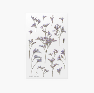 This is a misty blue sticker in the form of pressed flowers and leaves. The flower language of Misty Blue is neat love. It can be seen in the grassy beaches between May and July, and blue-purple flowers bloom like snow on a branch. The distance to sky a little kkotmangul to have a calm and dreamy atmosphere, famous for its flowers are used a lot to love about a wedding bouquet