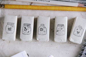 Malaysian artist, Wei Tieng, is the mighty creative behind her playground for inspiration, ingenuity and curious imaginations: Black Milk Project. Every piece of wooden rubber stamp creation features unique drawings with great detail that have been lovingly mounted and assembled by hand. With a combination of vibrant inks, stamp these beauties onto cards, scrapbooks, journals or planners for that memorable touch to your crafting projects. Black Milk Project's rubber stamps are made of industrial grade rubber and raw wood bark.