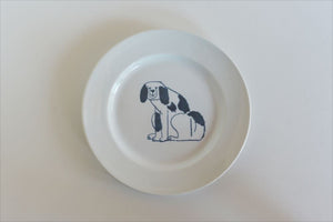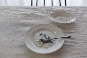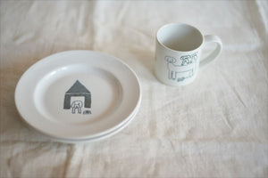 The pattern was originally transferred in black, but by applying white glaze on it, it looks like a dark gray with a slight bluish tinge.