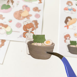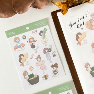 Transparent sticker sheet , perfect for your planner and illustrated in watercolour by Malaysian artist Qiara Teor in her inimitable, whimsical style.