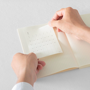 The MD Diary Sticker is made from MD Paper, so when you stick it to your MD Notebook, it all feels like it is still the same single notebook. While new features have been added, the MD Notebook remains unchanged. Attach it to the thin MD Notebook Light for an easy-to-carry diary. There are no set rules, so customize it to suit your own style!
