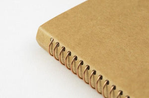 This is a notebook that consists of rough Kraft papers that resemble a desert camels walk. This is a notebook made of our original paper called DW Kraft Paper that has a textured surface as well as comfortability in writing. The cover with a natural feeling that includes resin makes the paper strong and inscribed with the symbol of a camel, symbolizing the rough Kraft paper. Midori Spiral 'Camel' Notebooks feature 160 pages (80 sheets) of plain kraft paper and copper coloured spiral rings.