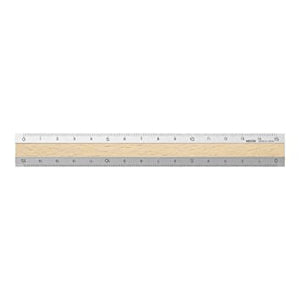 High quality aluminum ruler containing a part of natural wood – a lovely combination of precision and warmth. Scale is laser engraved to ensure it does not fade over time.