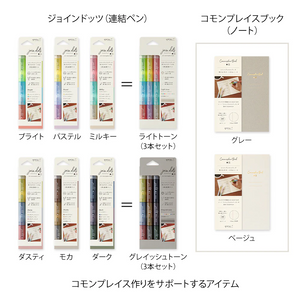 Midori Connecting Pen Join Dots-Grayish Tone 3 Pack