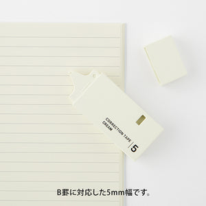 The tape is "cream" that is easy to match with cream-colored paper, and it is "5mm wide" that is easy to use for horizontal ruled notebooks, which are generally called B-ruled notebooks.