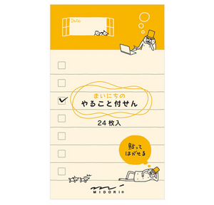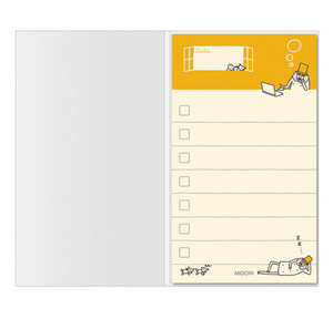 This is a message memo that can stand by simply folding it in half. On the memo is the illustration of Ojisan holding a signboard, together with his dogs. Simply put it on your desk and send warm messages.