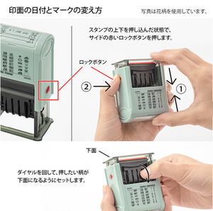 It is a rotating date stamp with a cute design on a date stamp with a clerical image. Oil-based pigment ink is used, so even if you paint over the pressed stamp with a water-based marker, it will not bleed.