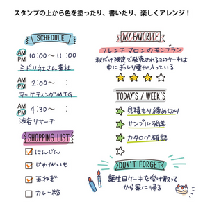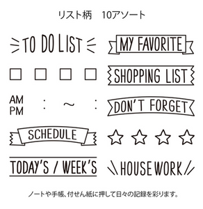 Cute decorations for diaries, notes and sticky notes! The recommended "list pattern" for bullet bullet journals is a single stamp with titles such as <TO DO LIST> and <SHOPPING LIST>, illustrations of <star mark> and <check box>, and a total of 10 patterns. You can switch between them. It is a design that can be combined to make a list of various uses.
