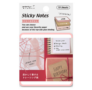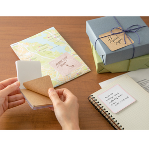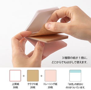 Three types of paper in one book. "Selectable sticky note" that can be peeled off from anywhere. A sticky note with rounded corners that combines three types of paper into one. There are plenty of high-quality paper, 20 kraft paper, and 20 tracing paper.