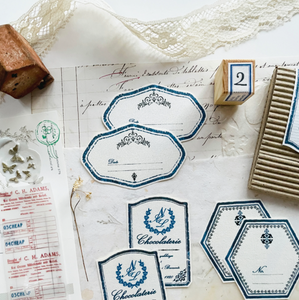 This label sticker collection is inspired by vintage French pâtisserie packaging designs.  Each pack includes 20 pieces beautiful labels that will add a special classic vintage feel to your creative projects!