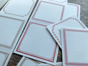 This label book boasts three patterns of frame designs that are lined up and can be cut into 45 x 45 mm squares with perforations. There are 25 different sheets with different designs so you can get a lot from the one label book