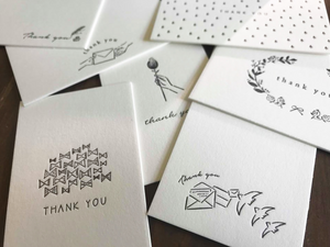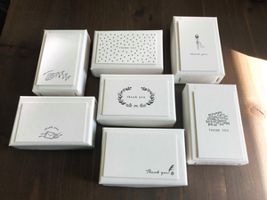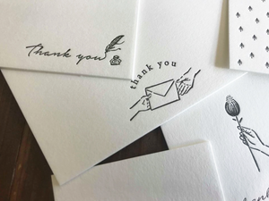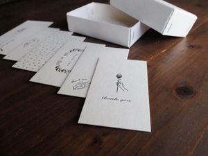 This is a great value set with 30 business card-sized cards with 7 different atmosphere illustrations and Thank you characters in a box made of the same type of paper from Finland, Finland Paperi, a paper from Finland, is mixed with wood chips and has a slight woody scent.
