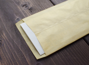 It is a wrapping paper that is both light and strong, thanks to the use of streak pattern felt during the manufacturing process. The surface is slippery and the reverse side is rough. This is a characteristic of paper made with a Yankee machine. It is used for food packaging, envelopes, insulation, masking paper, and other uses.