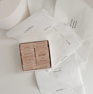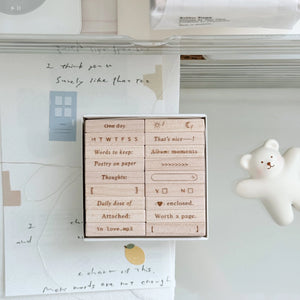 *With purchase of a complete set (18 pcs), it comes with a white paper tray for holding these tiny rubber stamps in place. ▤
