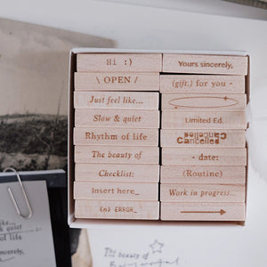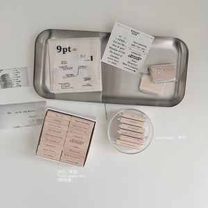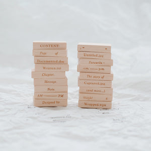 Designed in tiny font size of 9pt, these texts turned into rubber stamps allow digital font being put into analogue documentation.