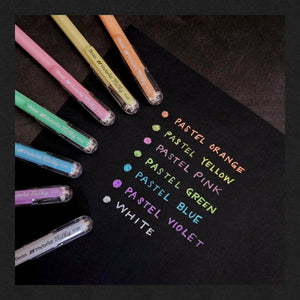 Add a "POP" of colour to any page with Milky pastel gel ink. Use to add decorations on cards, scrapbooks or photos. Vivid colours on white paper, bright pastel colours on black paper.