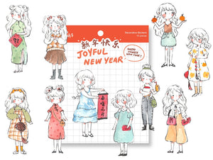 Set of 10 girl stickers , perfect for your planner and illustrated in watercolour by Malaysian artist Qiara Teor in her inimitable, whimsical style.