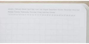 This extremely well crafted notebook boasts extremely thin, but bleedproof paper, with grids printed in a lovely shade of light grey, that's beautiful to look at but not too harsh on the eyes. The best part about this notebook is that it is undated. At the top of the page, the months and days are printed so you can circle the day and month you're on. Miss a day, or a week and it doesn't go to waste, just continue where you left off. Use the numbers printed on the left side of the page to record the hour of the day, or if you have an appointment at that time.