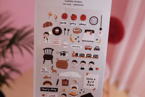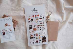 Suatelier stickers come in a wide variety of designs, themes and sizes.  Every sticker set is packed with many pieces of cute, playful or beautiful styles which are perfect to decorate or to set up adorable scenes in your cards, scrapbook projects, journals or planners.  The Korean-made stickers are printed on non-toxic, high quality and acid-free material with added details and texture to accentuate its style.