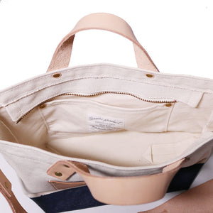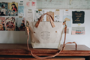 This classic bag comes with two interior pockets and one external leather pocket, overall finished with hand-stamped brass buttons and leather straps. Also comes with a detachable shoulder strap.