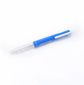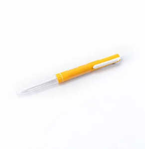 The lightweight pen body is made of plastic and features a clear bottom portion that allows you to see ink color.