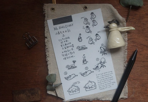 Mr. Birdie's Diary ofWon't get up this morning;Everyone is tired after taking the bus to work;Halfway to work,Sliding down from the chair,Sleep until work.